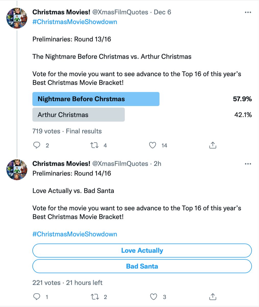 Christmas Movies! (@XmasFilmQuotes) is a Twitter account dedicated to celebrating the best Christmas movies and TV specials of all time.