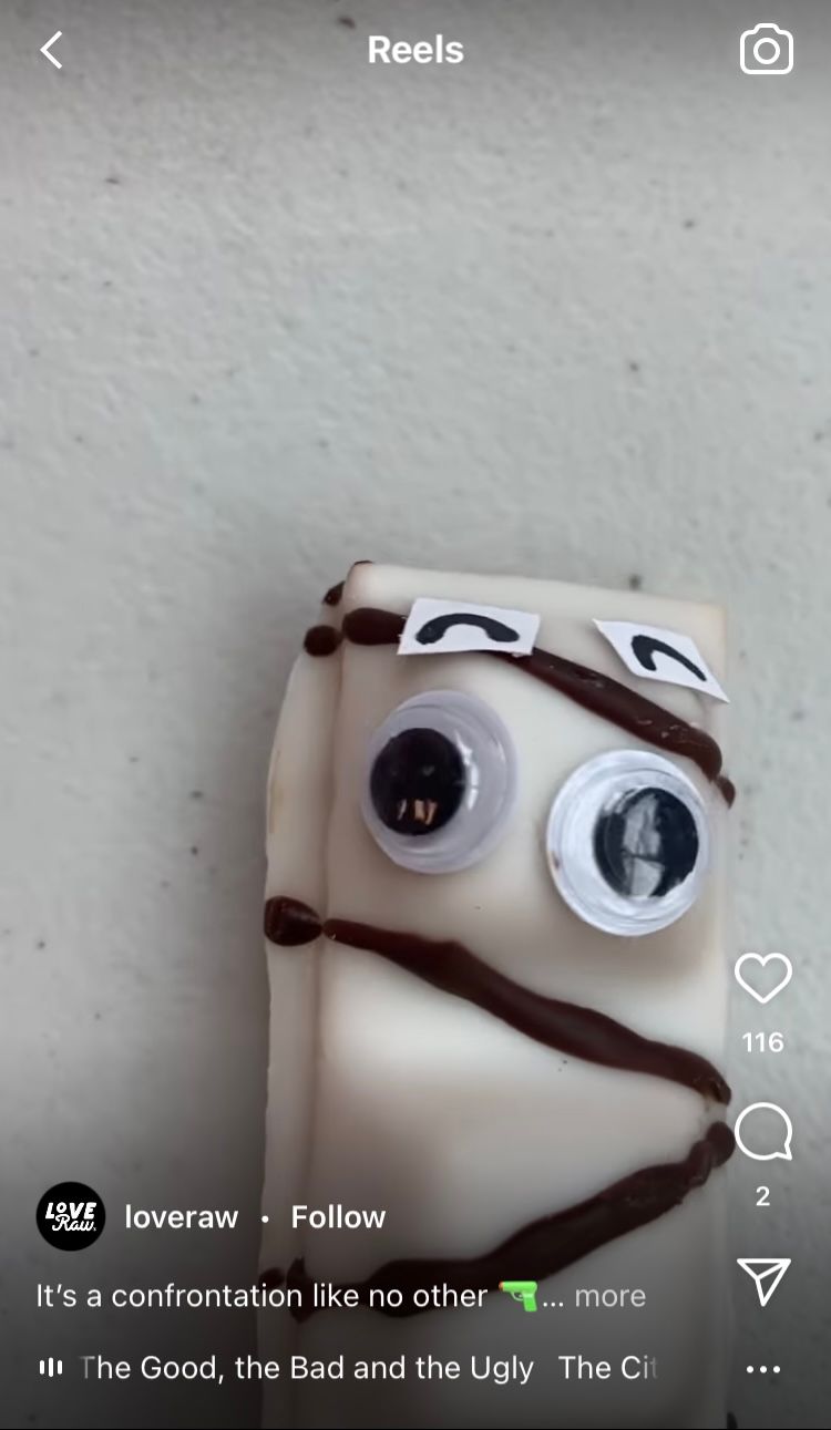 @loveraw creates content around comedy and recipes. This allows them two separate avenues to focus on entertainment (comedy) and information (recipes). It also builds on their company voice, using humour to connect and relate to their audience.