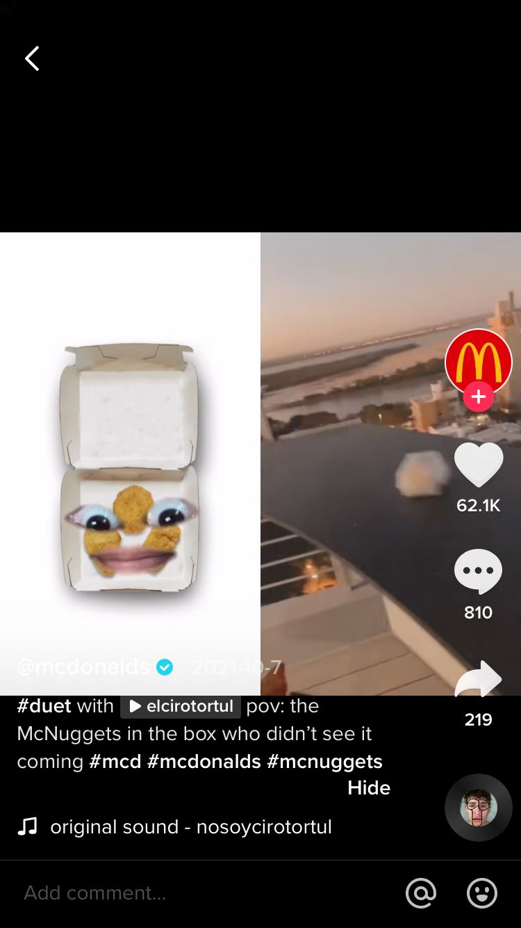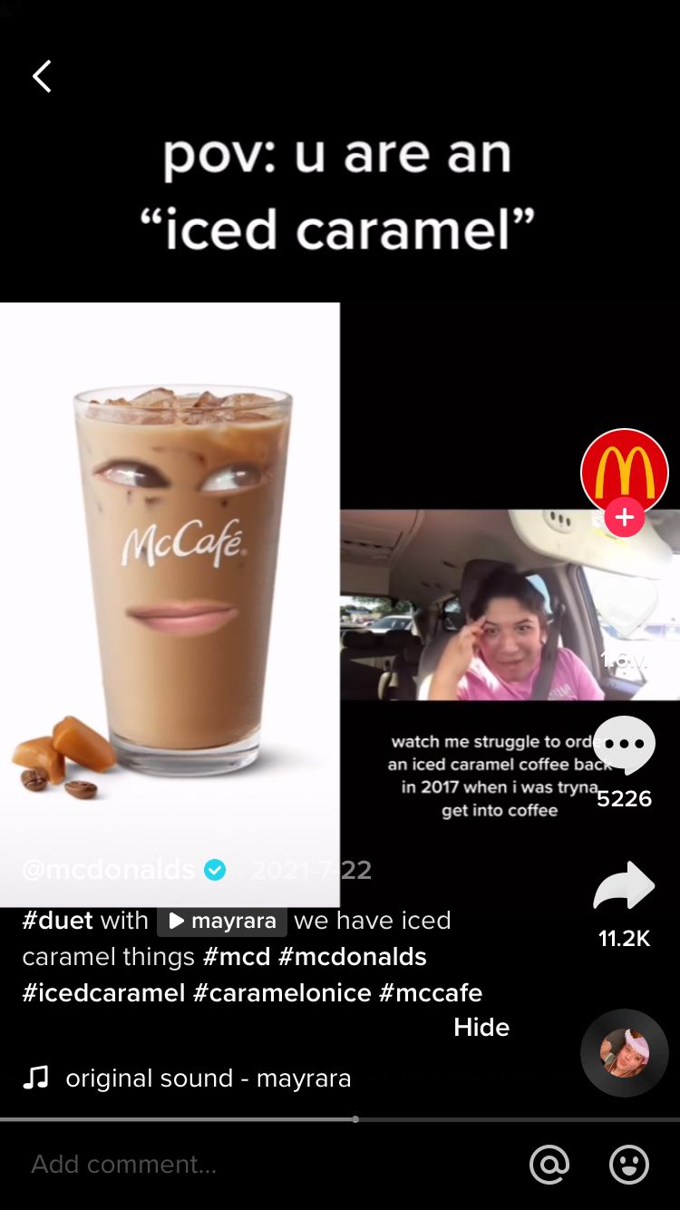 McDonald’s hops onto the duet feature on TikTok by offering the point of view of its own products. Yes, that’s right, you get to hear the thoughts of an iced caramel coffee and a box of chicken nuggets in these quirky, comical clips featuring McDonald’s responses to content from other creators.