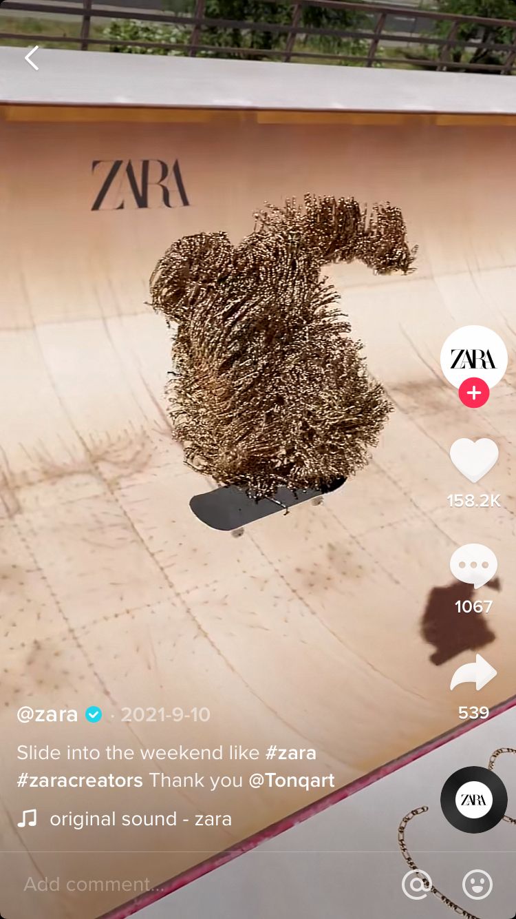 If we dive into #zaracreators we can see ZARA has recreated similar working relationships with several other creators from various industries including rice artist @friedriceart, skateboarder @tonqart and miniature artist @dslump.