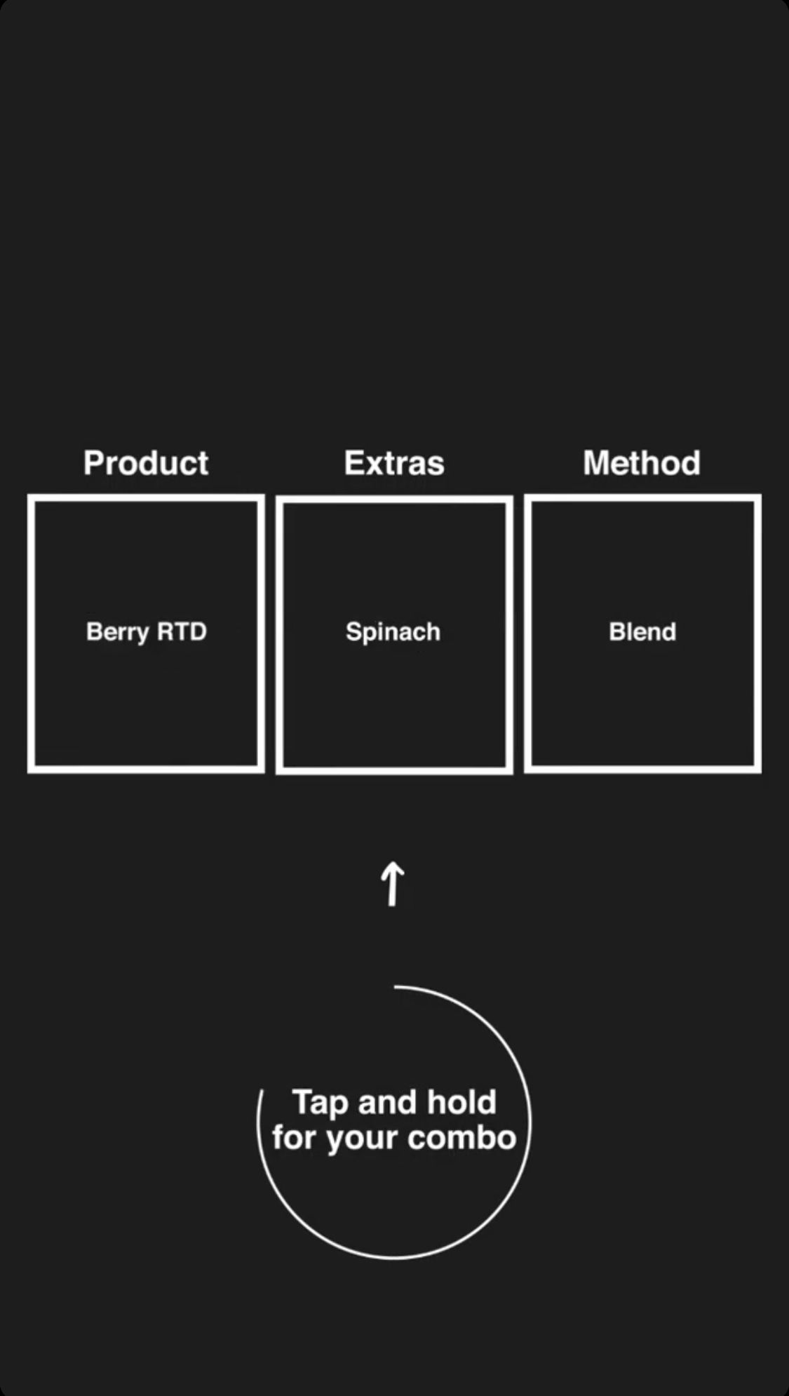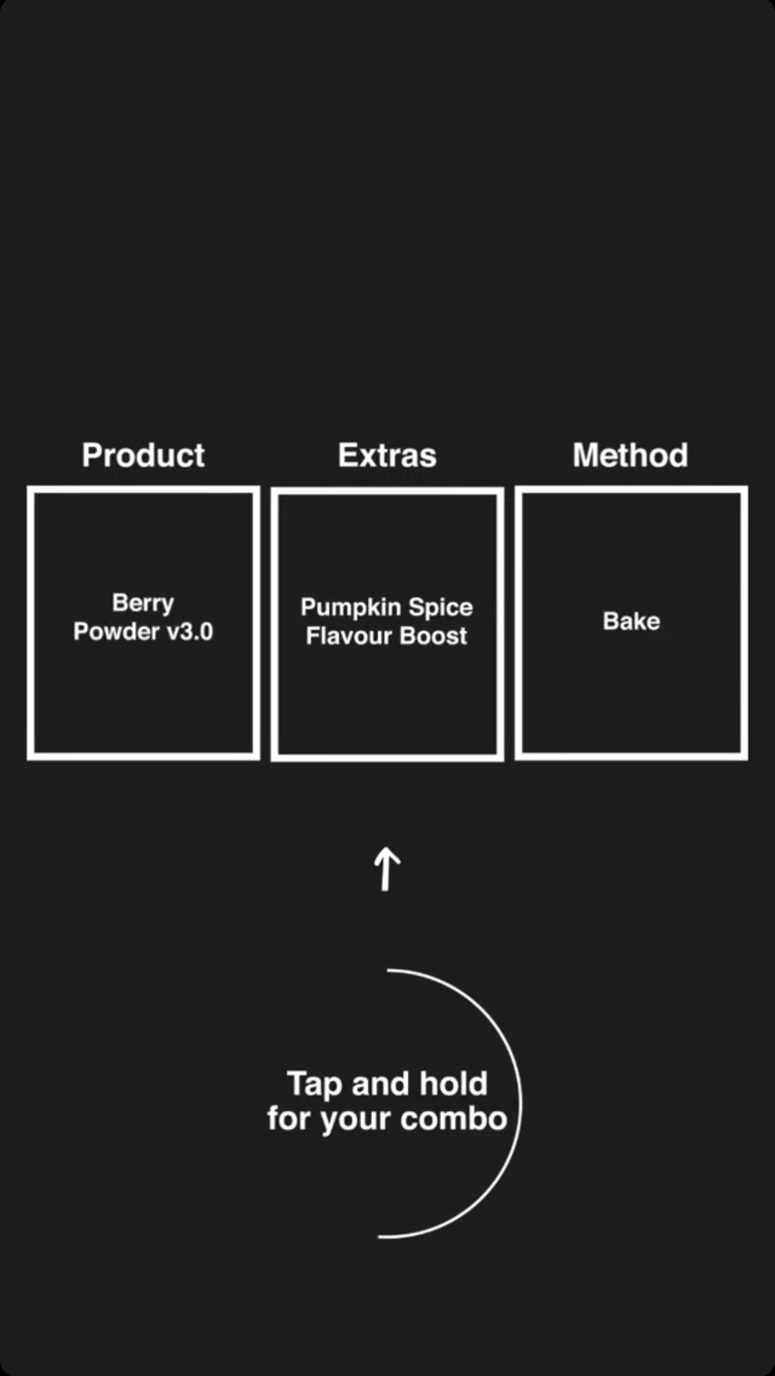 The ‘Huel Selector’ is a game using Instagram stories to promote products and inspire followers to try different ways of Huel use. The game flicks through Huel products, extras you can add to them and a method of preparation, leaving the player with an experimental recipe.