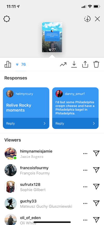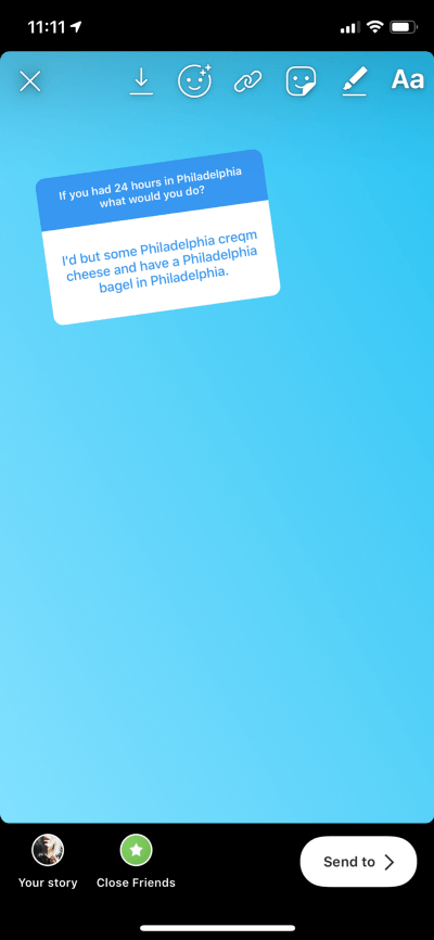 10. Continue adding responses and saving the image until you are happy to publish the Stories post.