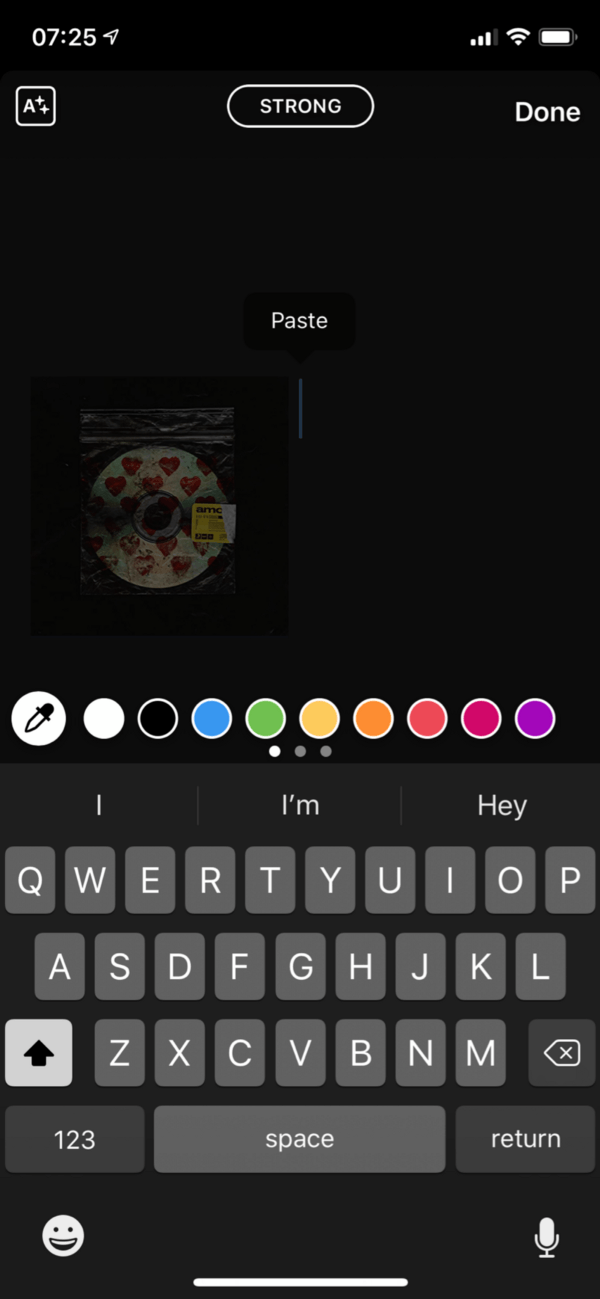 Step 2: Find the live photo that you wish to turn into a Boomerang and insert it into your Stories creator, by accessing your camera roll in the bottom left-hand corner of the screen.