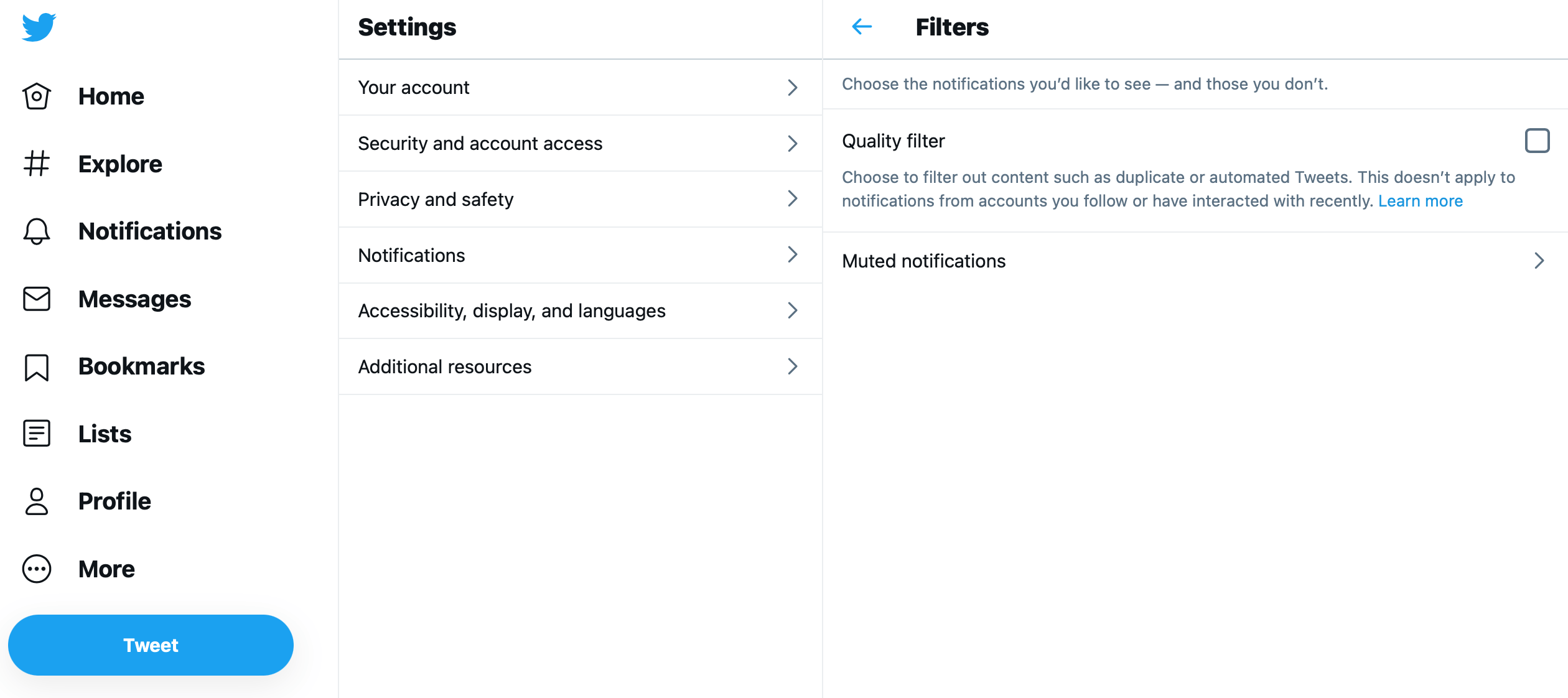 Twitter tries to give you the notifications that are the most relevant to you, and one of the ways it does this is through a quality filter. While this feature is really handy if you have a high level of interaction on your tweets which are difficult to keep up with, if you have a small business, or are trying to build relationships with as many of the people who are interacting with your updates as possible, this feature may be standing in your way. You see, when you’re building an audience, it pays to engage no matter how insignificant the reply might seem. By responding to a comment of an emoji, that person could feel more valued and connected to your brand than if the reply had simply been overlooked. Therefore the quality filter isn’t for everyone… but don’t worry! It’s simple to turn off and we’ll show you how.