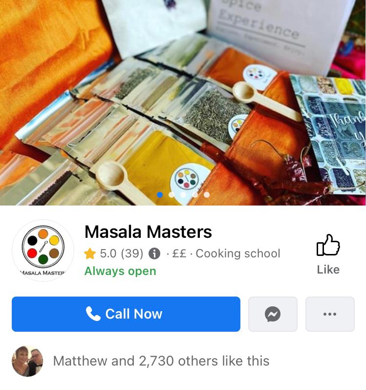 Your Facebook banner doesn’t have to be a single image. You can create a slideshow of multiple images displayed in this area, allowing you to showcase multiple messages to your audience. Masala Masters has taken advantage of this feature to showcase multiple aspects of the business.