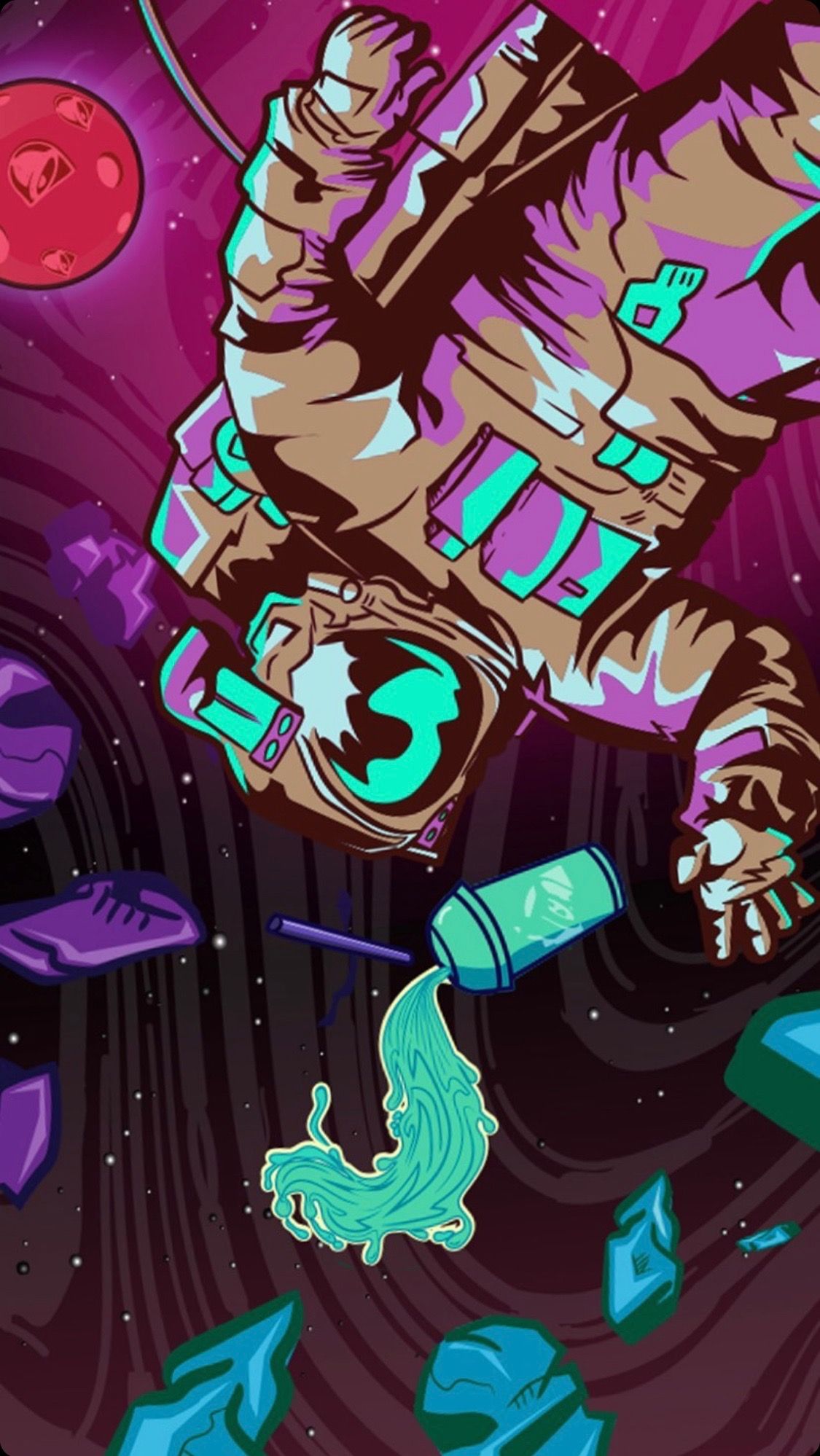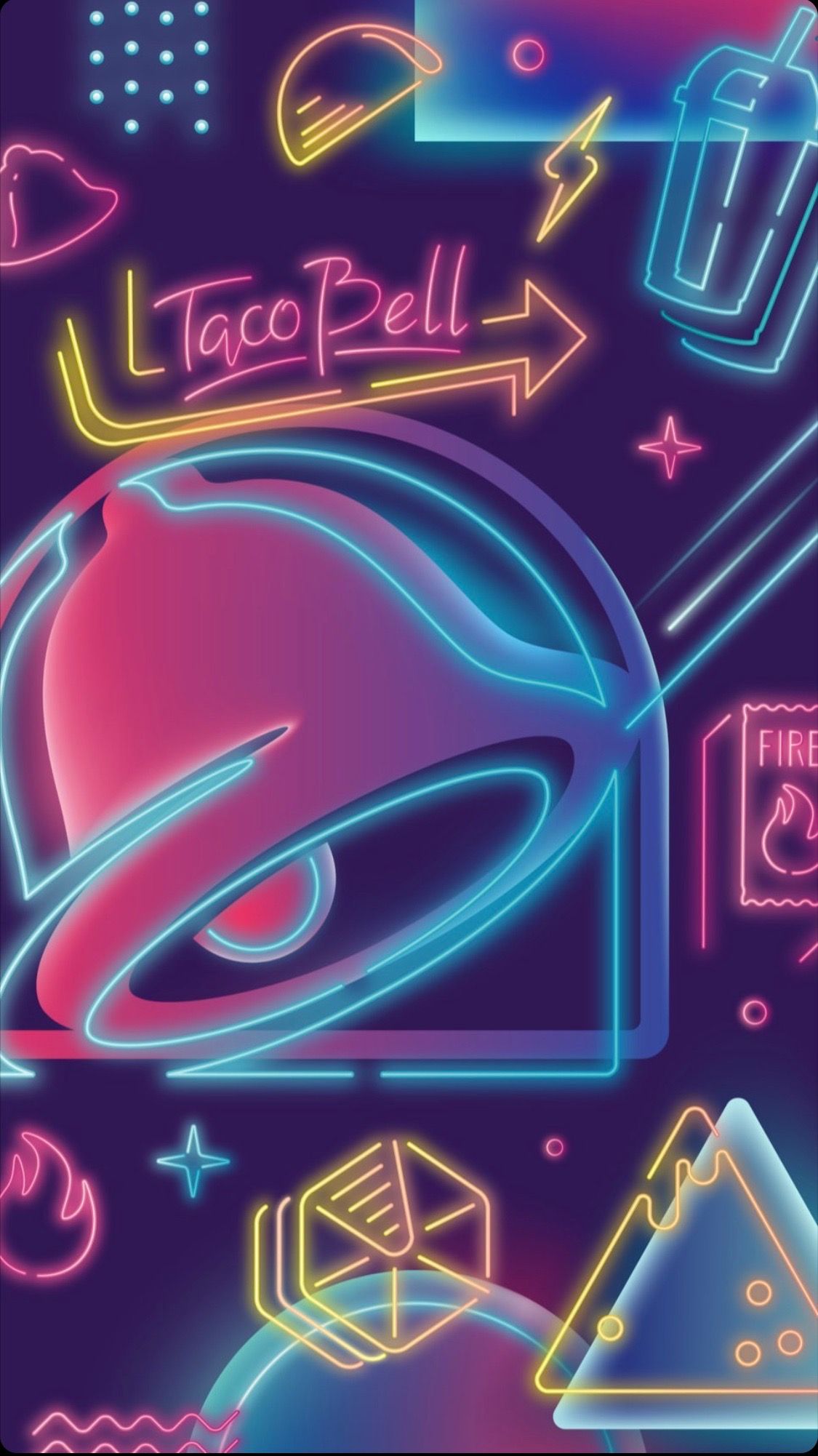 Taco Bell takes a varied and flexible approach to wallpapers, sharing stylised images in the brand's colour scheme. The business objectives appear to include sharing the brand, creating brand awareness and increasing customer loyalty.